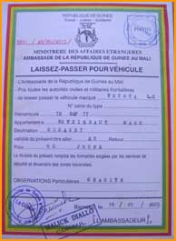 ! Puis, c'est la route pour Conakry, et là, miracle, le PK 36 se passe les doigts dans le nez, sans même avoir besoin de sortir nos arguments, on serait presque déçus !! Circulation dantesque à Conakry, mais on commence à avoir une sérieuse habitude ; nous allons directement chez Nadine Bari, cette femme française que nous avons connue par Internet, présidente de l'association Guinée Solidarité (c'est à cette assoc que nous remettrons les médicaments et matériel médical que nous avons dans nos malles). Moment émouvant de rencontrer cette femme, mariée à un guinéen qui a été enlevé en 1972 sous la dictature Sékou Touré ; Nadine s'est alors battue pendant des années pour essayer de savoir ce qu'il était devenu, jusqu'à ce qu'elle ait hélas eu la certitude qu'il avait été torturé à mort. |