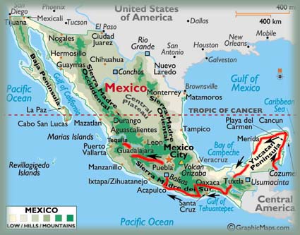 Compte tenu du gigantisme de Mexico (30 millions d'habitants) et de ses embouteillages monstrueux, nous décidons de ne pas aller dans la capitale avec notre 4x4. De plus, à Mexico DF, il y a des heures et des jours où la circulation des voitures est interdite, en fonction des numéros des plaques d'immatriculation. Nous l'avions déjà visitée à deux reprises il y a une dizaine d'années, ce n'est vraiment pas une ville à visiter en voiture. |