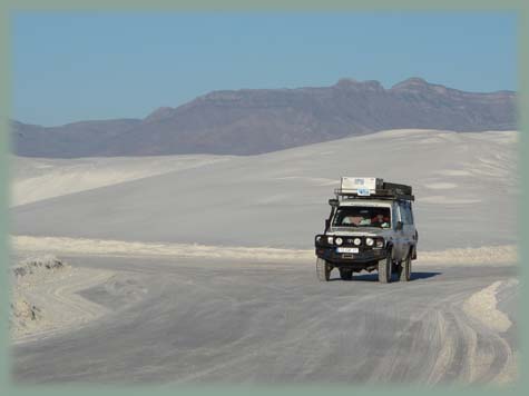 Ce parc permet d'admirer de magnifiques dunes de sable blanc. En effet, c'est le plus grand désert de dunes de gypse au monde, s'étendant sur environ 440 km². Ces dunes brillantes changent constamment : elles s'agrandissent, s'élèvent en cimes puis s'abaissent, mais toujours en progressant. Lentement mais implacablement, le sable poussé par les grands vents du sud-ouest recouvre tout sur son passage. |