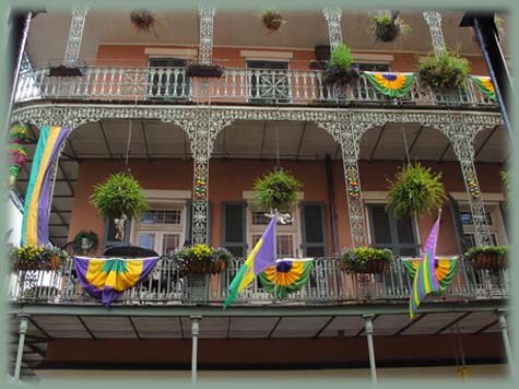 | Entre deux parades qui bloquent la ville (nous sommes en période du Mardi Gras), nous allons bien entendu visiter New Orleans. La ville est décorée et les orchestres de jazz sillonnent les rues, pour notre plus grand plaisir. Au départ simple comptoir de la Compagnie du Mississippi, elle devint la capitale de Louisiane française en 1722. New Orleans est une ville à la vie culturelle riche, réputée surtout pour sa musique (le jazz) et sa cuisine à base de fruits de mer (crevettes, huîtres, écrevisses). La Nouvelle-Orléans s'enorgueillit d'être la ville qui a la meilleure cuisine des États-Unis et la meilleure musique du monde. Elle est située sur les bords du Mississippi, non loin de son delta, au sud du lac Pontchartrain. Nous flânons ainsi dans le Vieux carré (en anglais, French Quarter) de La Nouvelle-Orléans, centre historique de la ville. Historiquement le Vieux carré était un quartier où les créoles francophones ont habité. Le charme du French Quarter, ce sont toutes ces maisons aux balcons en fer forgé. A la suite du passage de l'ouragan Katrina le 29 août 2005, la population de New Orleans a été, en grande partie, évacuée vers des villes de Louisiane, du Texas et d'autres États de la fédération américaine. Actuellement, la ville est progressivement reconstruite. |