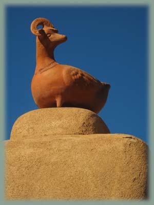 La neige tombée ces derniers jours rajoute une délicieuse touche de couleur sur les maisons en adobe que nous découvrons au fil des rues de la ville. Toute la ville, ou presque, est en adobe, aucun immeuble "gratte-ciel" ne vient trancher dans cette univers rose. |