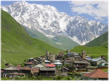 Perché à 2.400 mètres d'altitude, ce village dans la vallée de la Svanétie est le plus haut d'Europe dont l'habitation est permanente. Mais, à cause de la neige, la seule piste qui y monte peut être fermée neuf mois par an, isolant ses habitants pendant tous les mois d'un très long hiver. En été, c'est vraiment la plus belle province de la légendaire région du Caucase, et à elle seule mérite le voyage en Géorgie. |