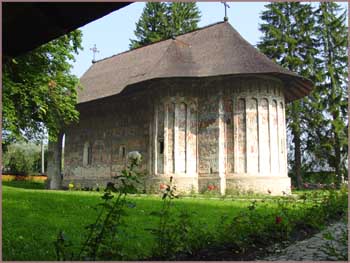 Situé à 5 ou 6 km de la ville de Gura Humorului, sur une colline au cur d'un village de la Bucovine, le monastère d'Humor offre de belles fresques extérieures peintes par Toma de Suceava. L'église fut fondée en 1530 par une famille de boyards (grands propriétaires terriens), Anastasia et Toader Bubuiog, avec l'aide du voïvode (un prince, un seigneur, ou un comte) Petru Rares. |